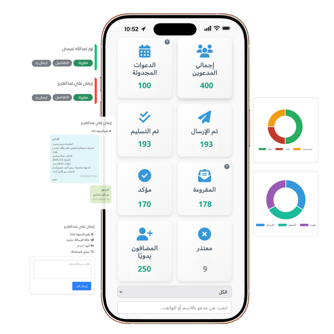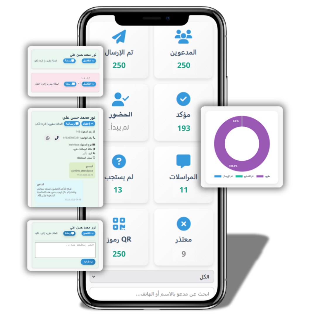 لوحة تحكّم مباشرة لعدد المؤكّدين والمعتذرين والرسائل